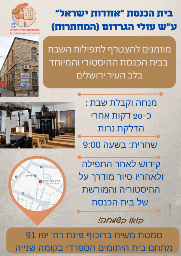 למשלוח דוא"ל לבית הכנסת- israelachdut@gmail.com